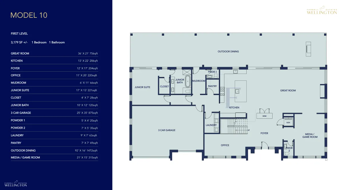 Experience the pinnacle of sophisticated living in Wellington with Farrell’s breathtaking Model 10. Witness the meticulous attention to detail embedded in every corner of a Farrell residence. This expansive 5,900 +/- sqft sanctuary boasts 7 elegant bedrooms, 8 bathrooms, dual half baths, and an ample 3-car garage.
