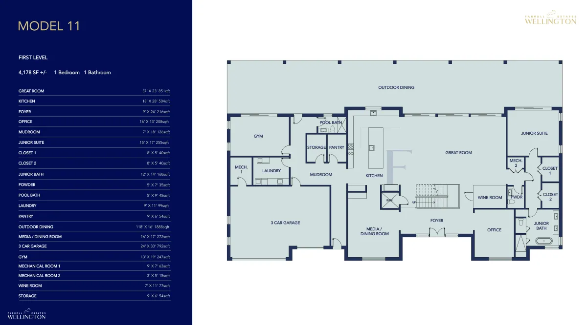 Experience the pinnacle of sophisticated living in Wellington with Farrell’s breathtaking Model 10. Witness the meticulous attention to detail embedded in every corner of a Farrell residence. This expansive 8,900 +/- sqft sanctuary boasts 5 elegant bedrooms, 5 bathrooms, dual half baths, and an ample 3-car garage